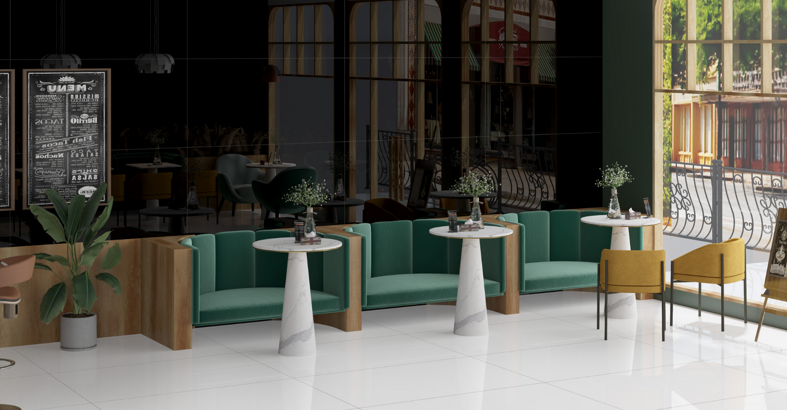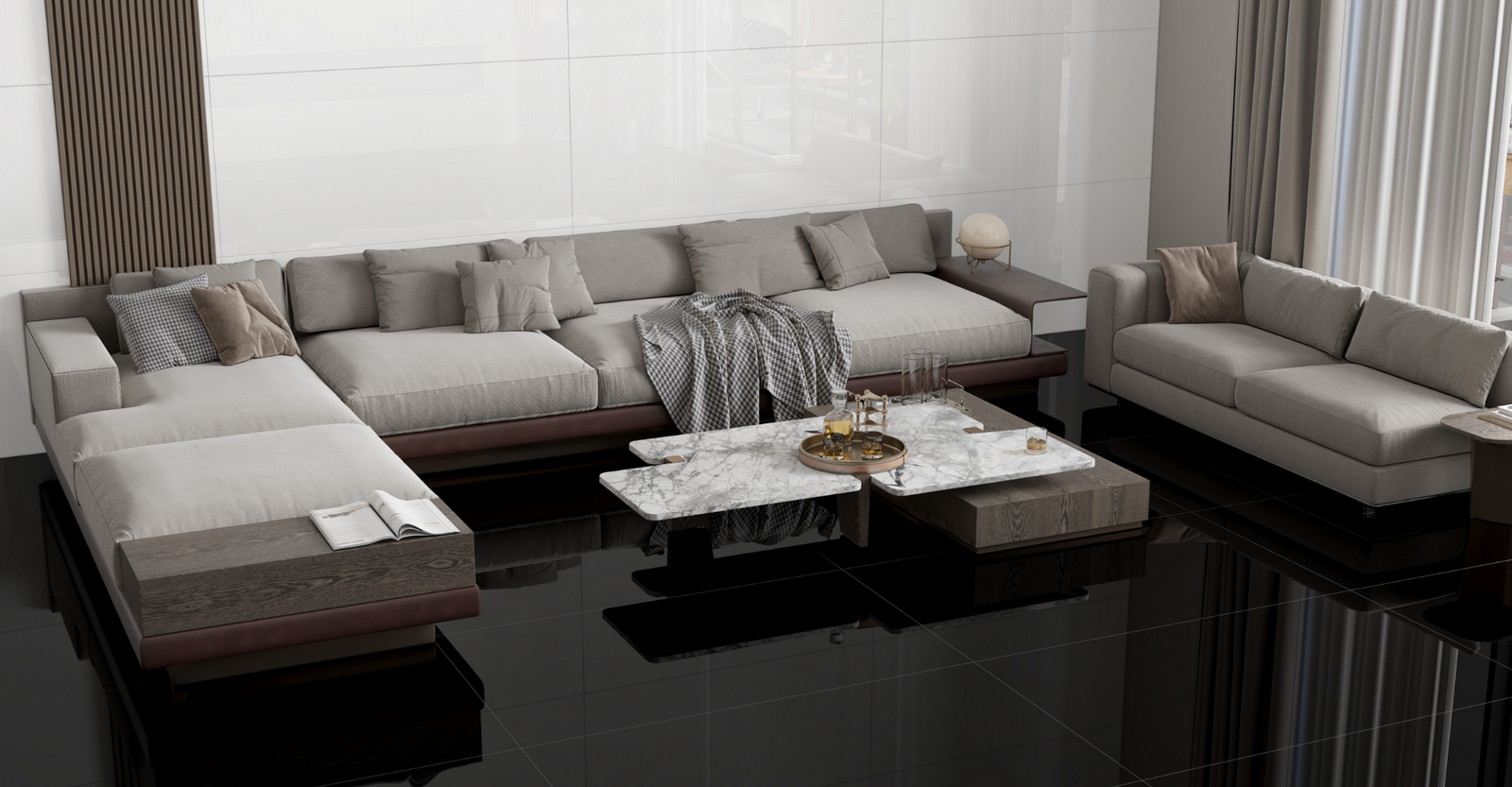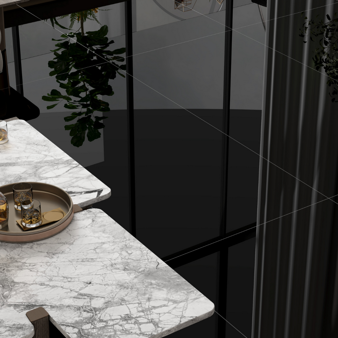 Zed Black tiles bring high-gloss brilliance, amplifying light and enhancing spatial depth to create a dramatic, ultra-premium aesthetic. Resistant to stains, scratches, and moisture, they deliver both beauty and performance — perfect for luxurious living rooms, lobbies, and contemporary interiors.