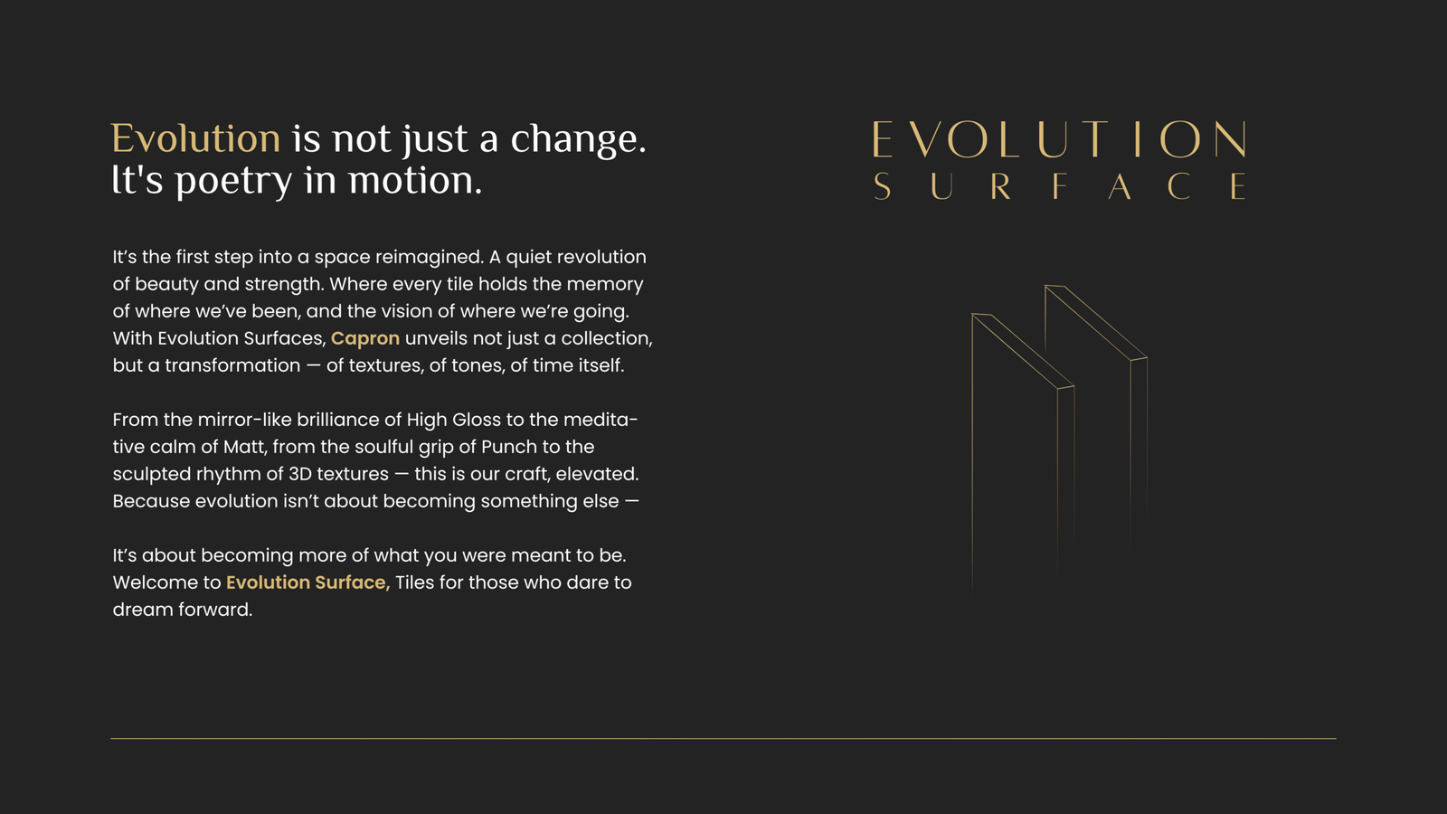 NOT JUST A SURFACE, A STATEMENT. NOT JUST A TILE. A TRANSFORMATION.